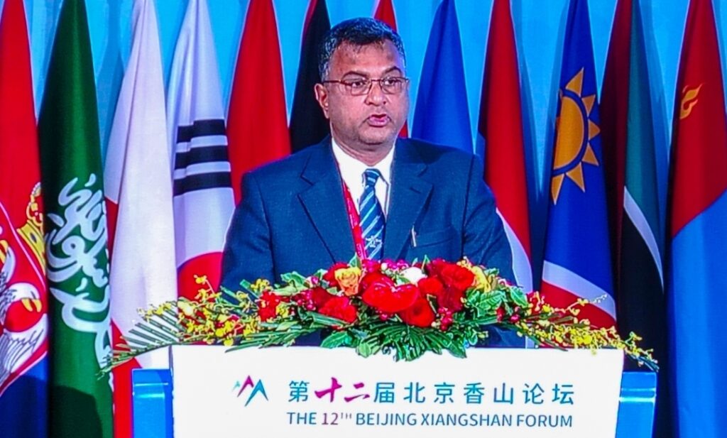 சீனாவில் நடைபெற்ற 12வது பீஜிங் சியாங்ஷான் மன்றத்தில் உயர்மட்டக் கூட்டத்தில் உரையாற்றிய இலங்கை பாதுகாப்புச் செயலாளர் ஏர் வைஸ் மார்ஷல் சம்பத் துயகோந்தா (ஓய்வு), உலகளாவிய மற்றும் பிராந்திய பாதுகாப்பு சவால்களை எதிர்கொள்வதில் கூட்டு உரையாடல், பிராந்திய ஒத்துழைப்பு மற்றும் பரஸ்பர மரியாதை ஆகியவற்றின் முக்கியத்துவத்தை வலியுறுத்தினார்.