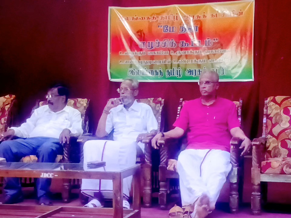 இலங்கை தமிழரசு கட்சியின் மேதின கூட்டம் இன்று வியாளக்கிழமை[1] யாழ்ப்பாணம் வீரசிங்க மண்டபத்தில் இலங்கை தமிழரசுக் கட்சியின் பதில் தலைவர் சி.வி.கே. சிவஞானம் தலைமையில் நடைபெற்றது