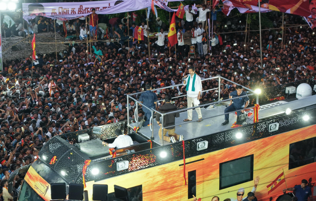 கட்சியின் பொதுச் செயலாளர் புஸ்ஸி ஆனந்த், நிர்மல் குமார், மாவட்டச் செயலாளர் மதியழகன் உள்பட 4 பேர் மீது இதுவரை வழக்குப் பதிவாகியுள்ளது. கரூர் நகர பொலிஸ் நிலையத்தில் இந்த வழக்குகள் பதிவாகியுள்ளன. இதில் முதல் குற்றம் சாட்டப்பட்டவராக கரூர் மேற்கு மாவட்டச் செயலாளர் மதியழகன் பெயர் சேர்க்கப்பட்டுள்ளது. 2வது பெயராக புஸ்ஸி ஆனந்த், மூன்றாவது பெயராக நிர்மல் குமார் பெயர் சேர்க்கப்பட்டுள்ளது. 4வதாக மற்றவர்கள் என்று சேர்க்கப்பட்டுள்ளது.