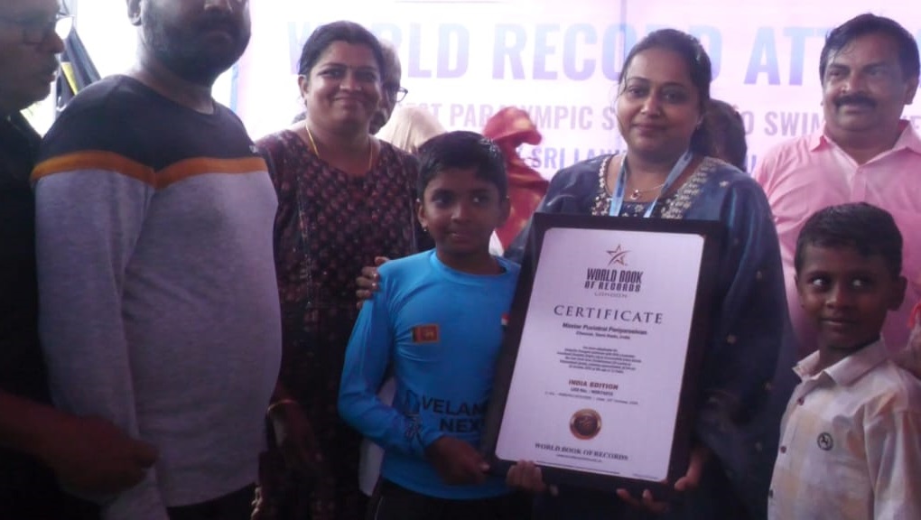 இயலாமைக்கும் சாதனைக்கும் உள்ள தூரத்தை நீந்தி கடந்து சாதனை படைக்க வேண்டும் என்ற இலட்சியத்துடன் முழங்காலுக்கு கீழே பாதிக்கப்பட்ட 12 வயது மாற்றுத்திறனாளி சிறுவன் கடந்த வெள்ளிக்கிழமை (3) தலைமன்னாரிலிருந்து தனுஷ்கோடி வரையிலான பாக்கு நீரிணையை 9 மணி 11 நிமிடத்தில் நீந்தி கடந்து சாதனை படைத்துள்ளார்.