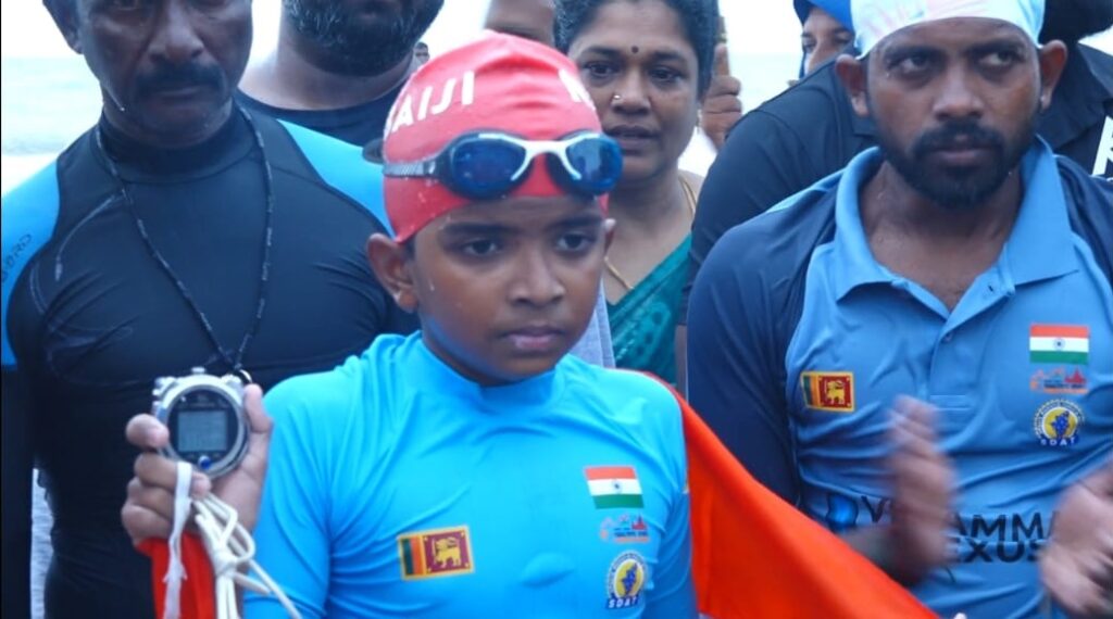இயலாமைக்கும் சாதனைக்கும் உள்ள தூரத்தை நீந்தி கடந்து சாதனை படைக்க வேண்டும் என்ற இலட்சியத்துடன் முழங்காலுக்கு கீழே பாதிக்கப்பட்ட 12 வயது மாற்றுத்திறனாளி சிறுவன் கடந்த வெள்ளிக்கிழமை (3) தலைமன்னாரிலிருந்து தனுஷ்கோடி வரையிலான பாக்கு நீரிணையை 9 மணி 11 நிமிடத்தில் நீந்தி கடந்து சாதனை படைத்துள்ளார்.
