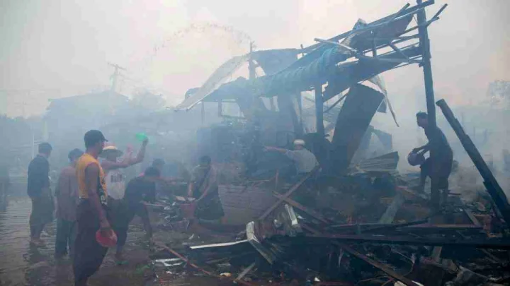 மியான்மரில் புத்த திருவிழாவின் போது பாராக்ளைடர் மூலமாக குண்டு வீச்சு நடைபெற்றதில் 24 பேர் பலியானார்கள்.