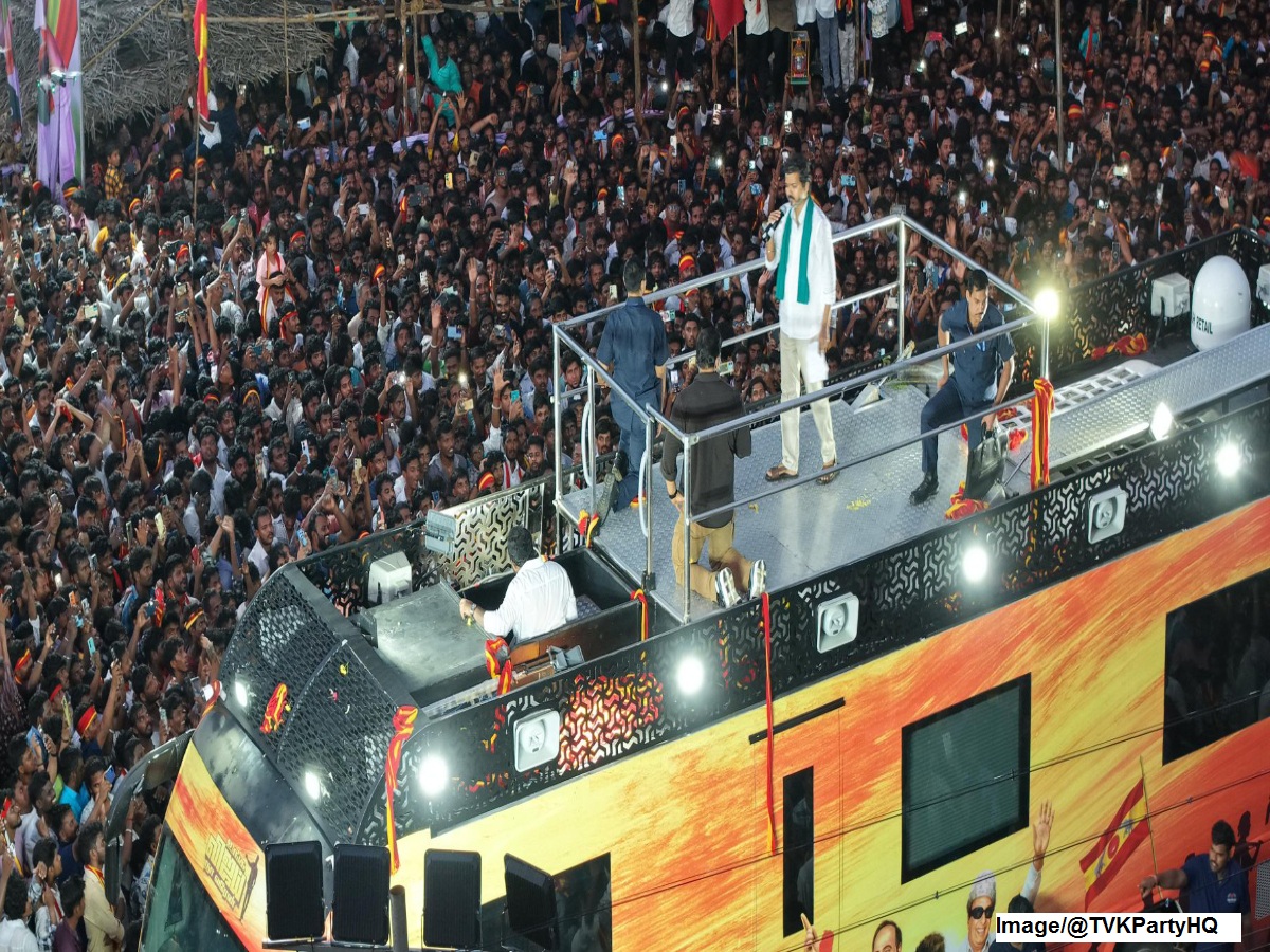 விஜய்யின் பிரசார வாகனத்தை சென்னையில் இருந்து கரூர் சிபிஐ முகாம் அலுவலகத்திற்கு கொண்டுசென்ற சிபிஐ அதிகாரிகள் சோதனை செய்து வருகிறார்கள்.