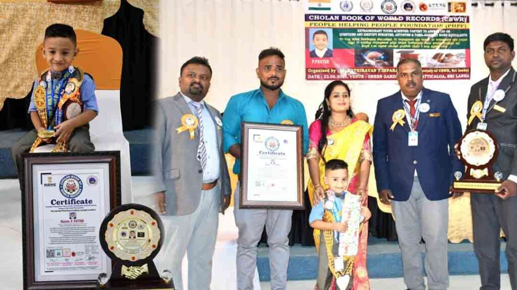 இதற்கான நிகழ்வு நேற்று (16) ஹாலிஎல ஹெவன்ஸ் ஹொட்டலில் சோழன் உலக சாதனைப் புத்தக நிறுவனத்தின் இலங்கைக் கிளையின் துணைத் தலைவர் ஸ்ரீ நாகவானி ராஜா முன்னிலையில் நடைபெற்றது.