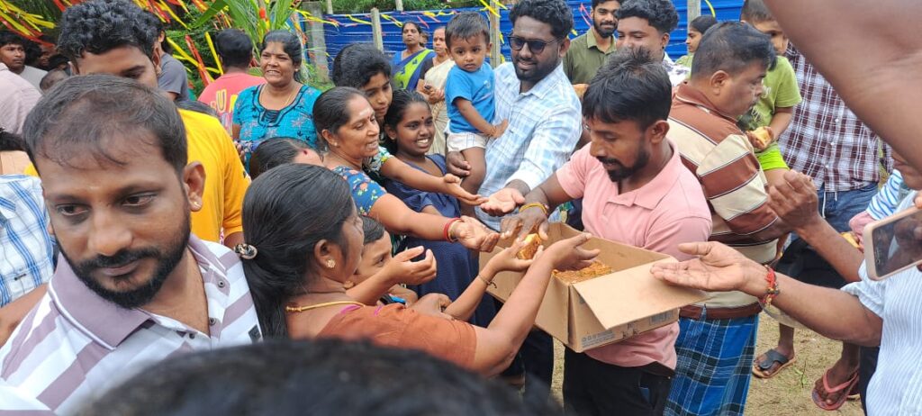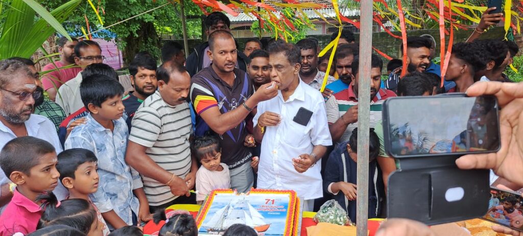 இதன்போது கேக் வெட்டியும், 71 இனிப்பு மற்றும் மர கன்றுகள், பாடசாலை மாணவர்களுக்கான கற்றல் உபகரணங்க வழங்கியும் பிறந்த தினத்தை மக்கள் கொண்டாடினர்.