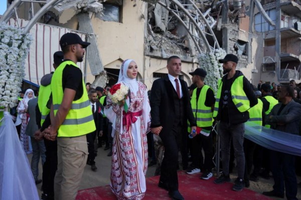 இந்தநிலையில் காசாவில் இடிந்த கட்டிடங்களுக்கு நடுவில் ஐம்பத்து நான்கு ஜோடிகளுக்கு இடம்பெற்ற திருமணம் உலகின் கவனத்தை ஈர்த்துள்ளதுடன் பலராலும் பகிரப்பட்டு வருகின்றது.