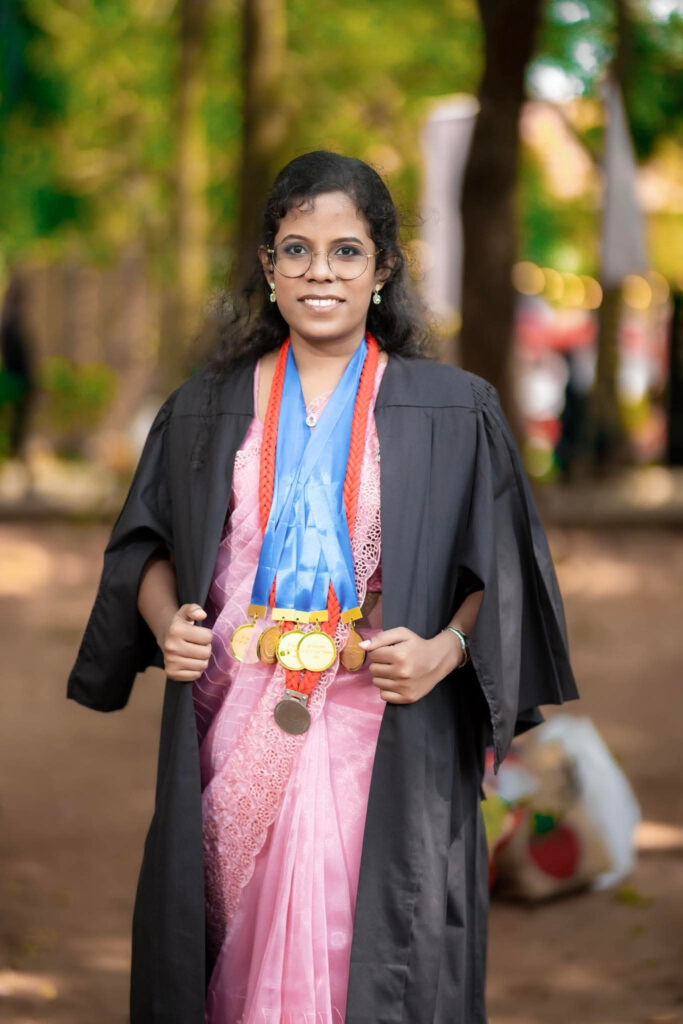 இவர் மருத்துவப் படிப்பின் அனைத்துக் கட்டங்களிலும் முதலிடம், சத்திரசிகிச்சை, மகப்பேற்றியல் மற்றும் குழந்தை மருத்துவம் உட்பட பல்வேறு துறைகளில் விசேட சித்தி மற்றும் மருத்துவப் பீடத்தின் சிறந்த மாணவி விருது ஆகிய பதக்கங்களைப் பெற்றுக் கொண்டார்.