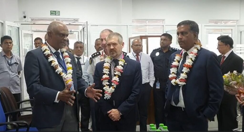 ஆஸ்திரேலிய உயர் ஸ்தானிகர் மேத்யூ டக்வொர்த், இலங்கை சுங்க இயக்குநர் ஜெனரல் சீவலி அருகோடவிடம் ஸ்கேனர்கள் அதிகாரப்பூர்வமாக ஒப்படைத்தார்.
