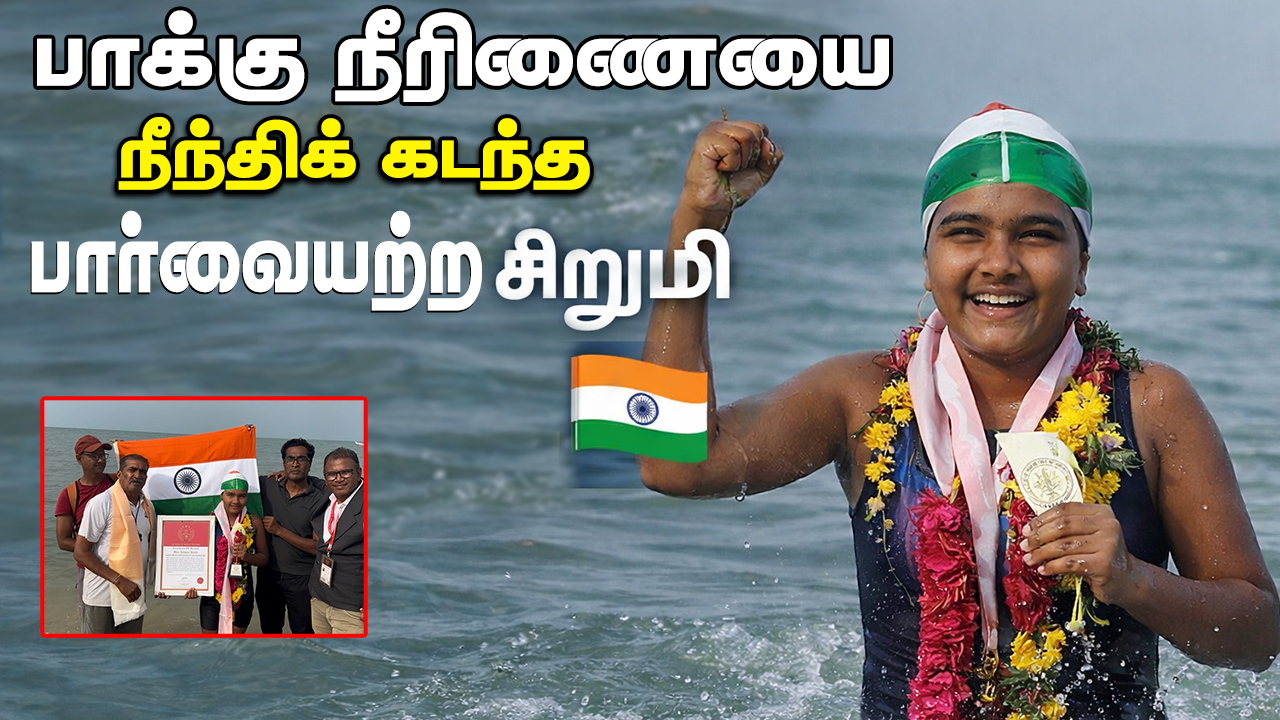 சாதிப்பதற்கு பார்வை ஒரு தடையல்ல என்பதனை நிரூபிக்கும் வகையில் தலைமன்னாரிலிருந்து தனுஷ்கோடி வரையிலான பாக்கு நீரிணையை 11 மணி நேரம் 15 நிமிடங்களில் நீந்தி மாற்றுத்திறனாளி சிறுமி ஒருவர் சாதனை படைத்துள்ளார்.
