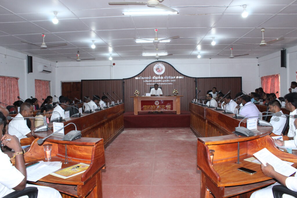 தவிசாளர் தியாகராஜா நிரோஷ் தலைமையில் வியாழக்கிழமை மாதாந்த அமர்வு நடைபெற்றது. இந்த அமர்வில் தமிழர் தாயகத்தில் அவர்களது இனவிகிதாசாரத்தினையும், வரலாற்றுத் தொன்மையினையும், அடையாளங்களினையும் மாற்றியமைக்கும் அனைத்து நடவடிக்கைகளையும் அரசு உடனடியாக நிறுத்தவேண்டும். அரசாங்கம் தமிழ் மக்களுக்கு நீதியை வழங்குவதாகத் தெரிவிக்கின்றபோதும் அது சிங்கள பேரினவாத நிகழ்ச்சி நிரலுக்குக் கட்டுப்பட்டதாக உள்ளது. அதனை நாம் வன்மையாகக் கண்டிக்கின்றோம் என தவிசாளரினால் தீர்மானம் முன்வைக்கப்பட்டது. மேலதிகமாக இவ் விடயம் தொடர்பில் அவசரதீர்மானம் மேற்கொள்ள வேண்டும் என உறுப்பினர் இ.கஜிபனினால் தவிசாளரிடம் கோரிக்கை ஒன்றும் சபையில் முன்வைக்கப்பட்டது.