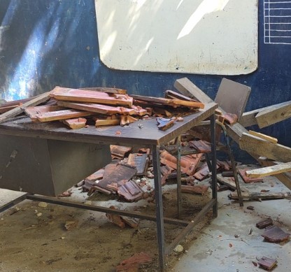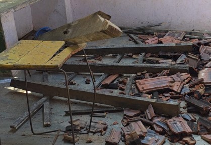 நேற்று மாணவர்கள் இல்லாத வேளையில் கட்டிடம் உடைவடைந்துள்ளது.