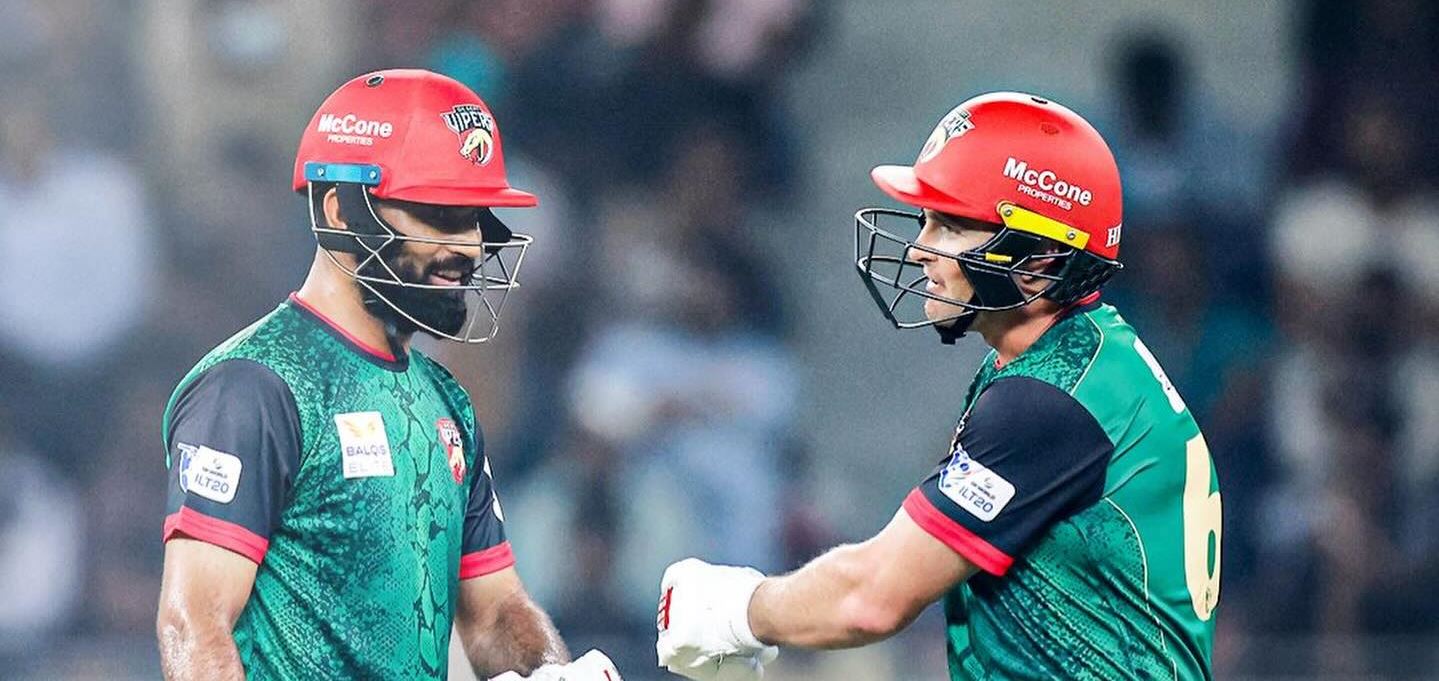 சாம் கரன் தலைமையிலான டெசர்ட் வைப்பர்ஸ் அணி 19 ஓவர்களில் 6 விக்கெட்களை இழந்து வெற்றி இலக்கை அடைந்தது.