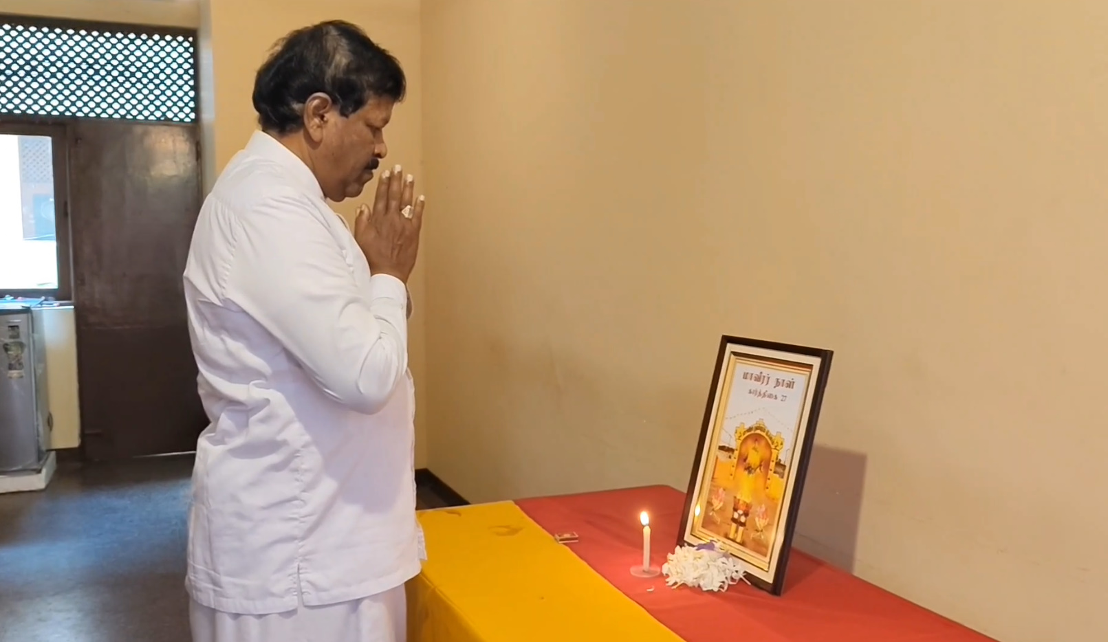 மாவீரர் துயிலமில்லத்தினைத் தாங்கிய உருவப்படத்திற்கு சுடரேரற்றி, மலர் தூவி, மாவீரர்களுக்கு உணர்வுபூர்வமாக அஞ்சலிகளைச் செலுத்தினார்.
