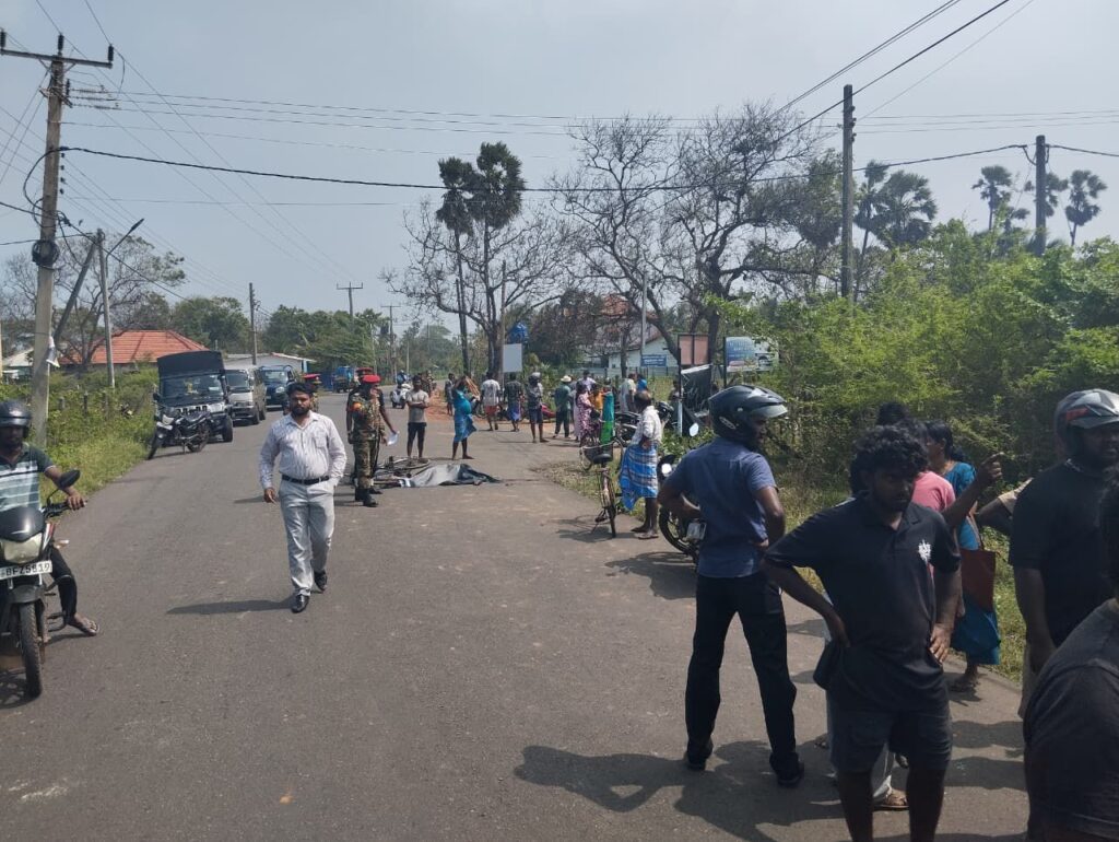 மயிலிட்டி பகுதியில் துவிச்சக்கர வண்டியில் பயணித்துக்கொண்டிருந்தவரை இராணுவ வாகனம் மோதியதில் முதியவர் சம்பவ இடத்திலேயே உயிரிழந்துள்ளார்.