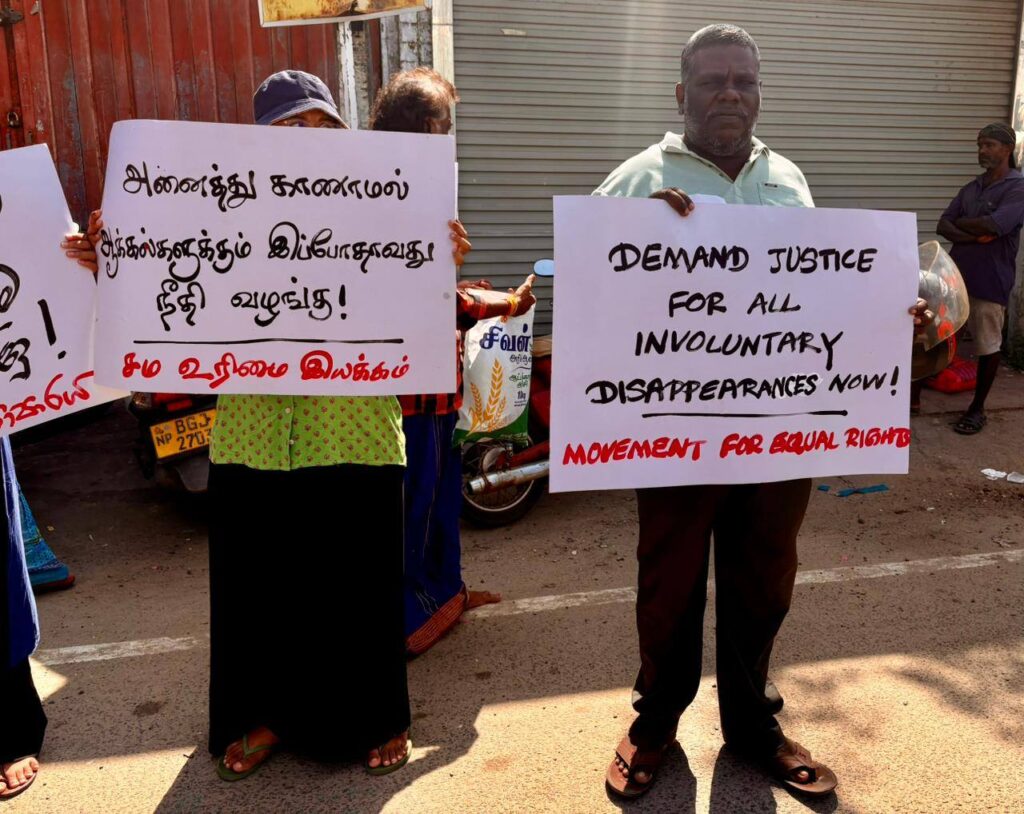 தென்னிலங்கையில் இருந்து வருகைதந்த குழுவொன்றினால் இப்போராட்டம் இடம்பெற்றது. இப்போராட்டத்துக்கான ஏற்பாட்டினை சமவுரிமை இயக்கம் ஏற்பாடு செய்திருந்தது.