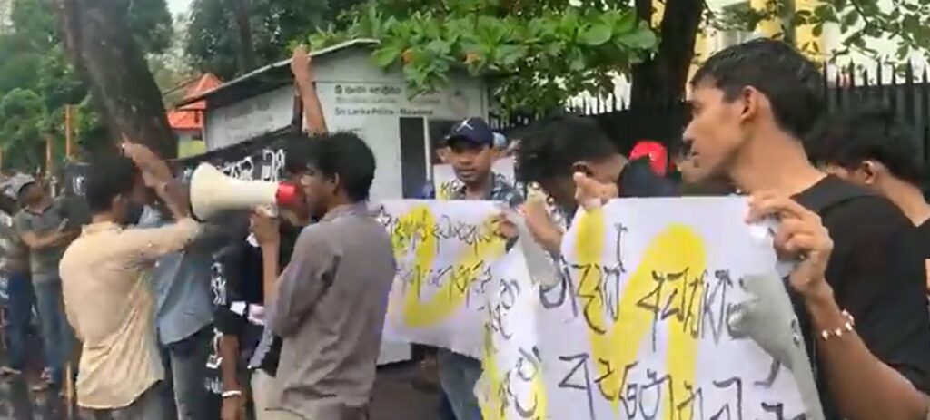 கறுப்பு நிறப் பதாகைகளை ஏந்தியவாறு வீதியில் இறங்கிய மாணவர்கள், சுகாதாரத்துறையில் நிலவும் வெற்றிடங்களுக்குத் தகுதியுள்ள பட்டதாரிகளை நியமிப்பதில் நிலவும் தாமதத்திற்குத் தமது கடும் எதிர்ப்பை வெளியிட்டனர்.