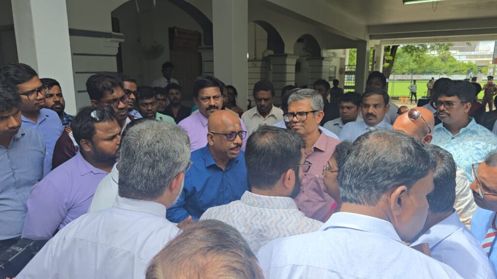 யாழ் மத்திய கல்லூரி நீச்சல் தடாக புனரமைப்பு பணிகளின் ஆரம்ப கட்ட வேலைகளை முன்னெடுக்க விளையாட்டு துறை அமைச்சர் சுனில் குமார கமகே நேற்று ஞாயிற்றுக்கிழமை கல்லூரிக்கு விஜயம் செய்த நிலையில் இந்த சம்பவம் இடம்பெற்றுள்ளது.