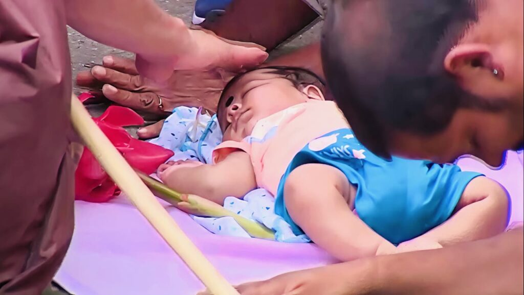 இதன்போது பாதையோரத்தில் ஒரு தம்பதியினர் தமது பச்சிளம் குழந்தையை துணியொன்றில் கிடத்தி வீதியோரம் வைத்திருந்தனர்.