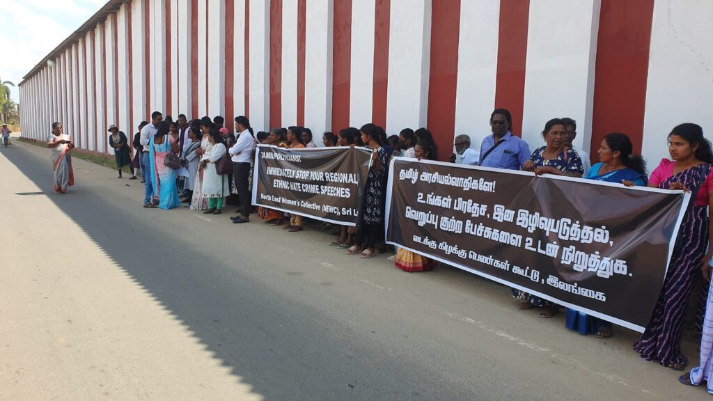 எனவே, அனைத்து அரசியல் தலைமைகளும் உடனடியாக தங்களது பொது உரைகளில் பொறுப்புணர்வுடன் நடந்து கொள்ள வேண்டும். இன, பிரதேச மொழி அடிப்படையிலான இழிவுபடுத்தல், அவதூறு மற்றும் வெறுப்பு பேச்சுகளை முற்றிலும் தவிர்க்க வேண்டும் என்பதையும் வலியுறுத்துகிறோம் என போராட்டகாரர்கள் தெரிவித்தனர்.