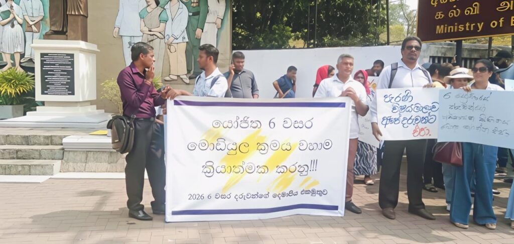 இலங்கையின் கல்வித் துறையில் புரட்சிகரமான மாற்றத்தை ஏற்படுத்தும் நோக்கில் முன்மொழியப்பட்டுள்ள புதிய கல்விச் சீர்திருத்தங்கள் மற்றும் 6-ஆம் தரத்திற்கான நவீன “மொடியுல்” (Module) பாடத்திட்டத்தை உடனடியாக நடைமுறைப்படுத்துமாறு வலியுறுத்தி இன்று பத்தரமுல்லயில் பாரிய கவனயீர்ப்புப் போராட்டமொன்று முன்னெடுக்கப்பட்டது.
