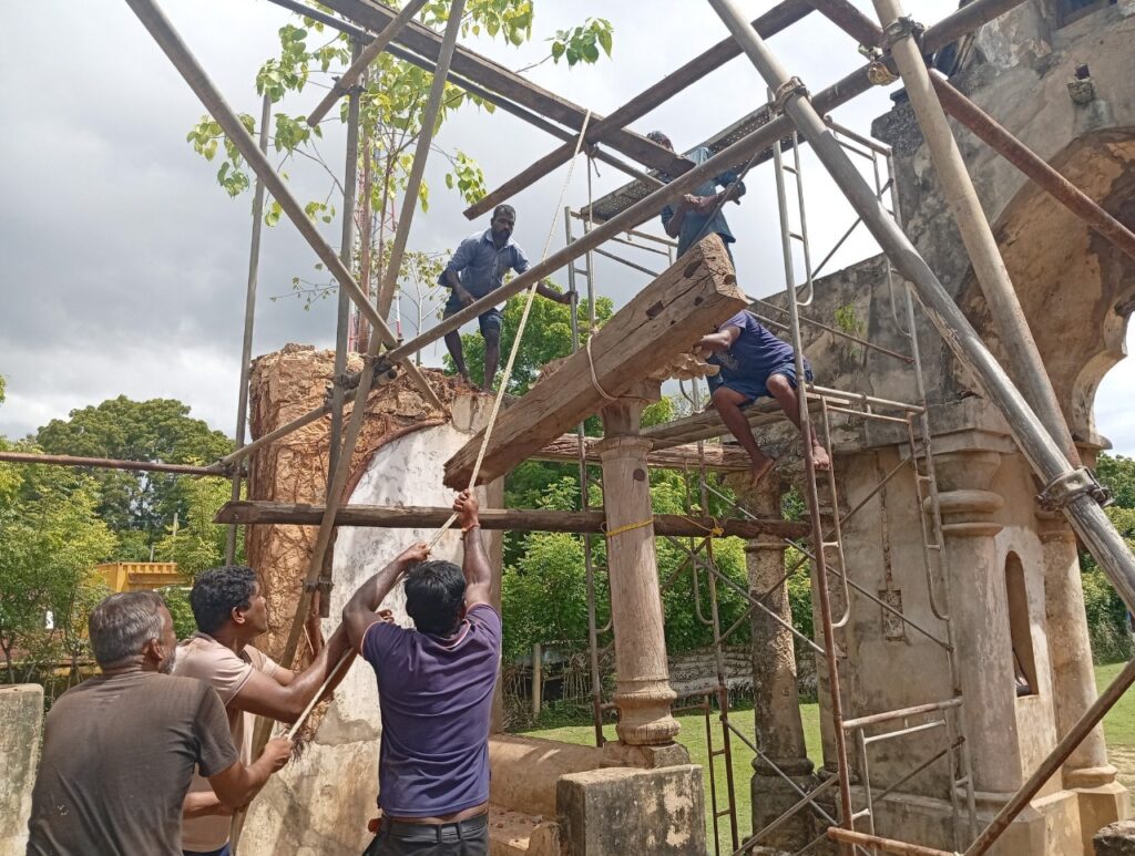 யாழ்ப்பாணம் நல்லூர் மந்திரிமனையின் ஒரு பகுதி கடந்த மாதம் இடிந்து விழுந்தது. கடும் மழையினால் பாரம்பரிய பழைய கட்டிடம் இடிந்து விழுந்ததால் பலரும் விசனம் வெளியிட்டிருந்தனர். இந்த நிலையில் இன்று வெள்ளிக்கிழமை மீள புனரமைப்பு பணிகள் இடம்பெற்றன. நேற்று வியாழக்கிழமையும் இப் புனரமைப்பு பணிகள் ஆரம்பிக்கப்பட்டன தொடர்ந்தும் புனரமைப்பு பணிகள் நடைபெறும் என யாழ் மாநகர சபை கூறியுள்ளது.