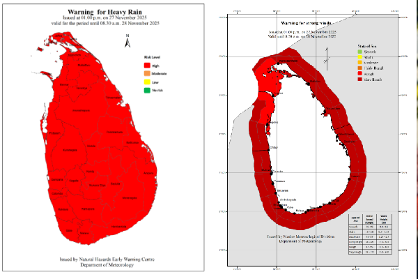 இதனடிப்படையில், நாடளாவிய ரீதியில் அதிகபட்ச மழை மற்றும் பலத்த காற்று வீசும் என எதிர்வு கூறப்பட்டுள்ளது.