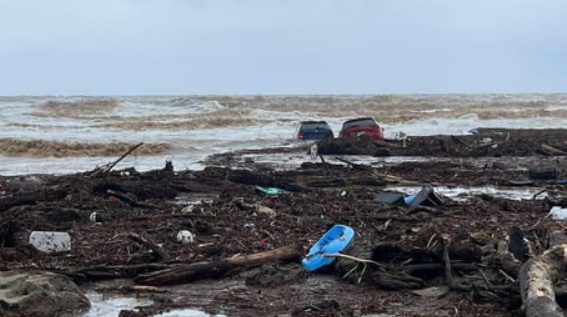 இதனால் கடற்கரைக்கு அருகில் நிறுத்தி வைக்கப்பட்டிருந்த ஏராளமான வாகனங்கள் வெள்ளத்தில் அடித்துச் செல்லப்பட்டு கடலில் மிதந்துள்ளன.