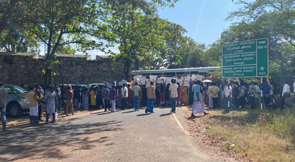 மட்டக்களப்பு காந்தி பூங்காவிற்கு முன்பாக ஒன்றுதிரண்ட நூற்றுக்கணக்கான பொதுமக்கள் கறுப்புப் பட்டிகளை அணிந்தும் கோரிக்கைகள் அடங்கிய பதாகைகளை ஏந்தியும் தமது எதிர்ப்பை வெளியிட்டனர்.